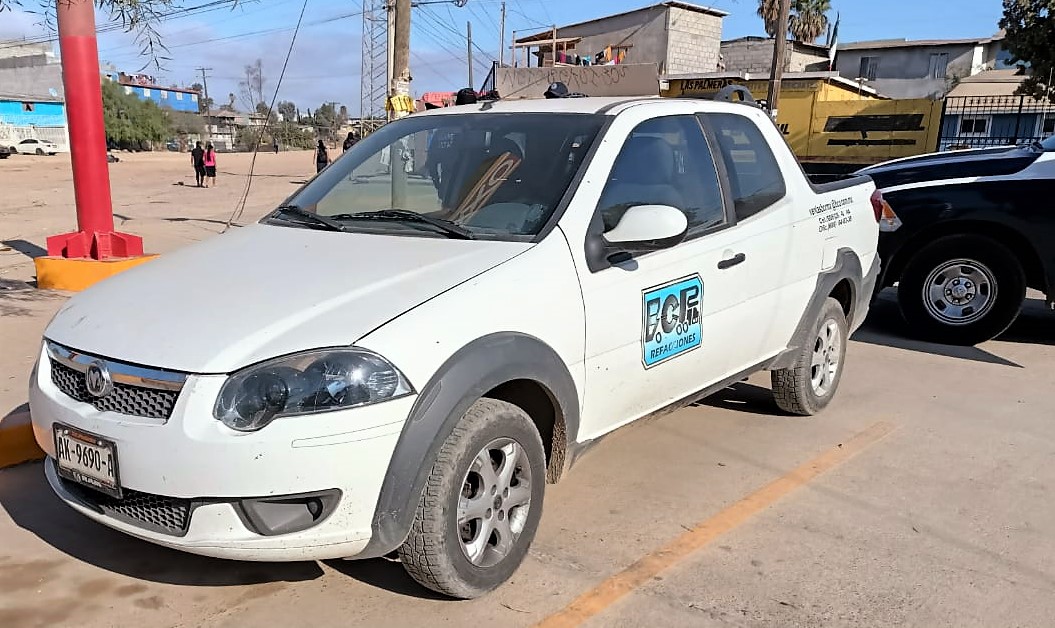 En otra acción agentes de la GESI se percataron de un vehículo abandonado sobre la calle Palmeras de la colonia Torrez, un pick up Dodge Ram, color blanco, que contaba con denuncia de robo del 17 de septiembre del presente año.