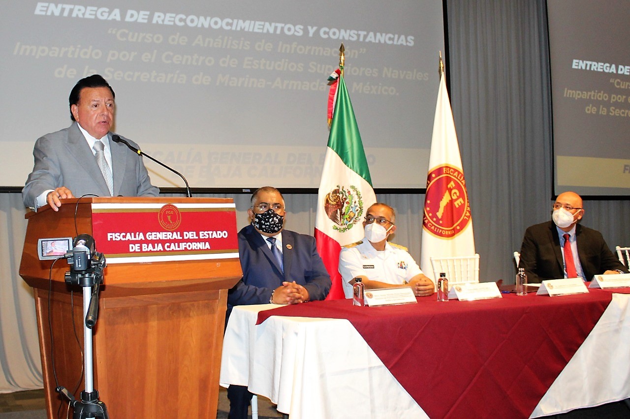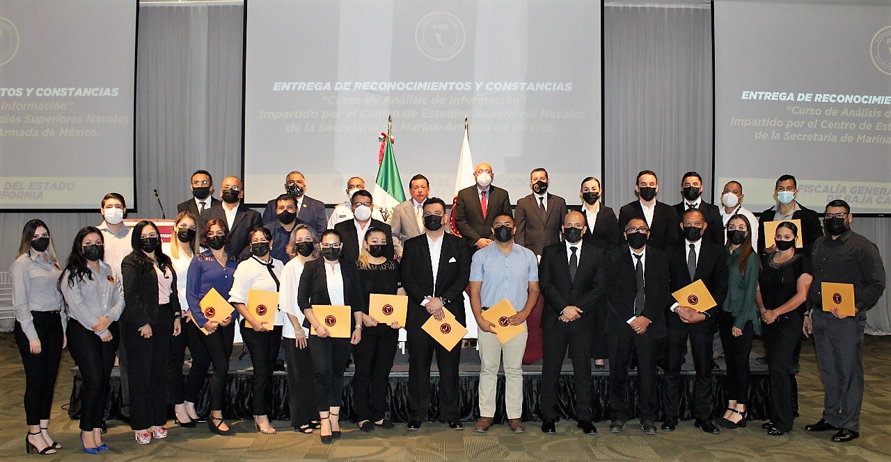 El Fiscal General del Estado, Juan Guillermo Ruiz Hernández, entregó constancias y reconocimientos a 40 elementos de la institución, que participaron en el “Curso de Análisis de Información”, impartido por el Centro de Estudios Superiores Navales de la Secretaría de Marina-Armada de México.