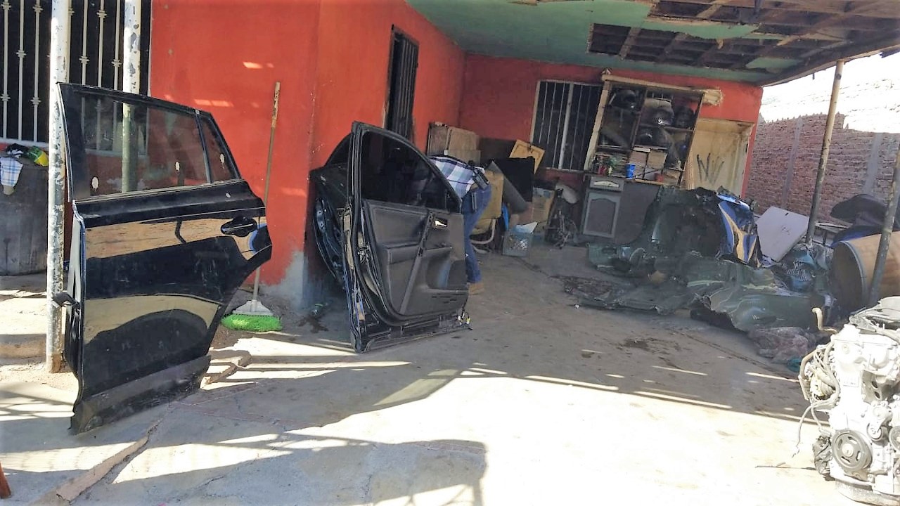 Elementos de la Fiscalía Regional de Mexicali, localizaron durante la cumplimentación de una orden de cateo en un domicilio de la colonia Baja California, partes y accesorios de un vehículo con reporte de robo.