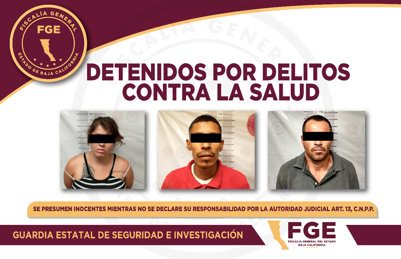 Como parte de la estrategia integral contra el narcomenudeo, elementos de la Fiscalía General del Estado (FGE), detuvieron a tres sujetos presuntos distribuidores de drogas, en posesión de varias dosis de metanfetamina y heroína.