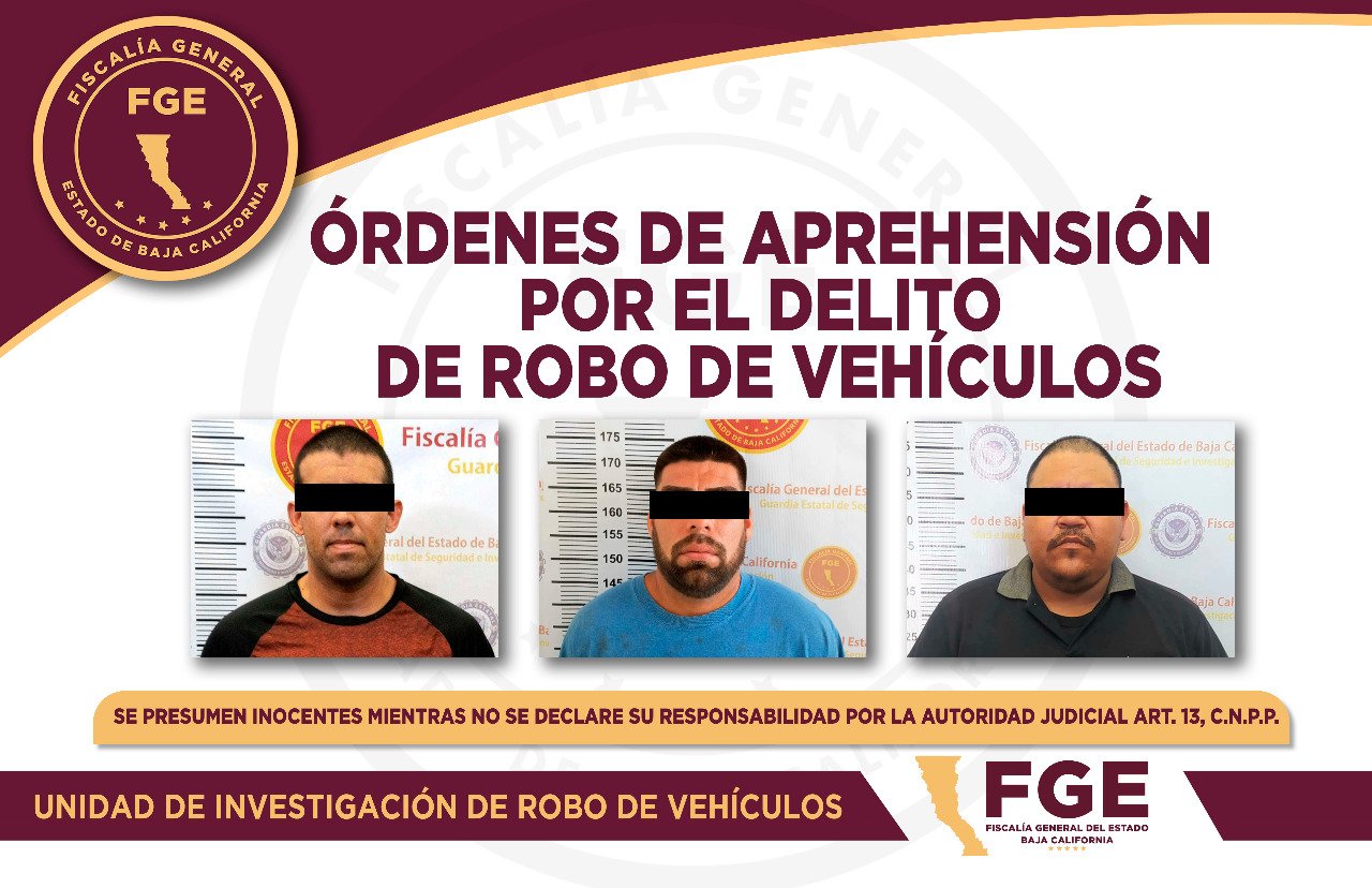 Elementos de la Fiscalía General del Estado (FGE), cumplimentaron tres órdenes de aprehensión por el delito de robo de vehículos.