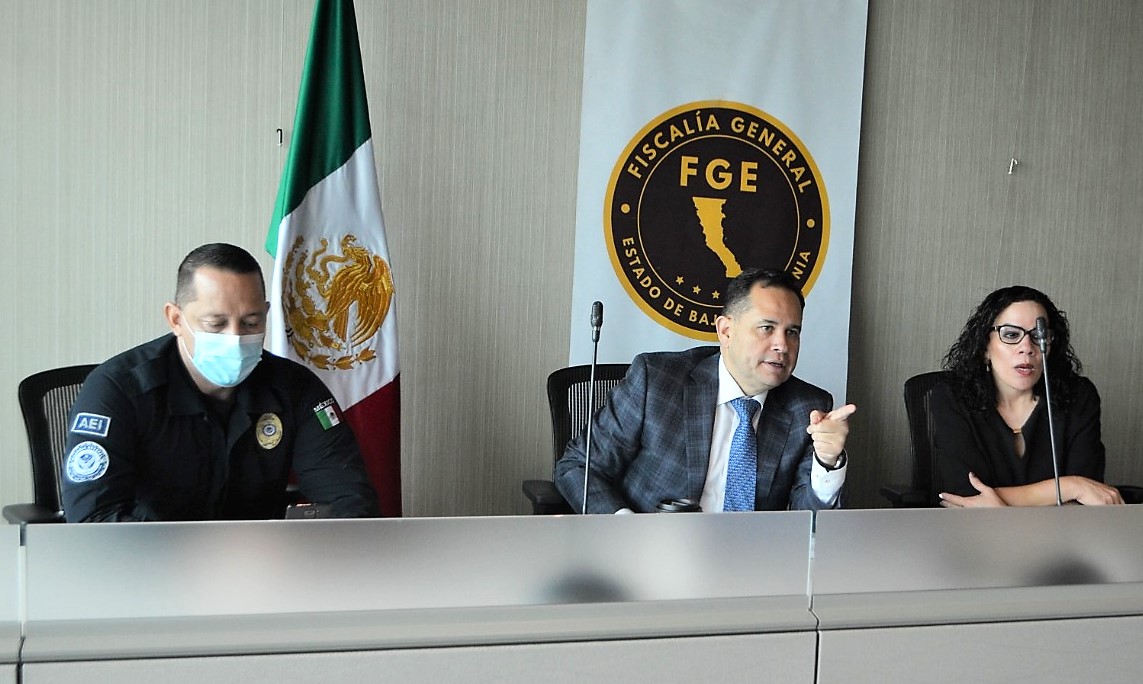 Desde las instalaciones de la FGE con sede en Tijuana se enlazaron, el fiscal central del Estado, Hiram Sánchez Zamora; la fiscal especializada en delitos contra la mujer por razón de género, Adriana Lizárraga González; y el coordinador del Centro Estatal de Inteligencia, David Fernando Rodríguez Robledo.