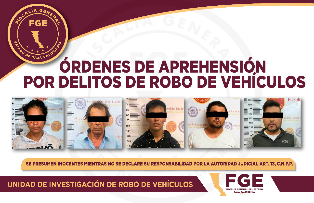 Cinco personas que tenían en su contra mandamientos judiciales por delitos de robo de vehículo en sus diferentes modalidades fueron detenidos por elementos de la Fiscalía General del Estado (FGE).
