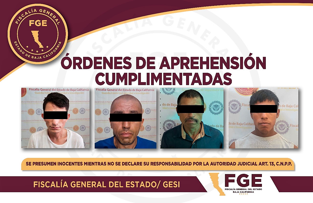 Cuatro personas que contaban con órdenes de aprehensión por delitos de robo, fueron capturados en acciones por separado por elementos de la Fiscalía General del Estado (FGE).