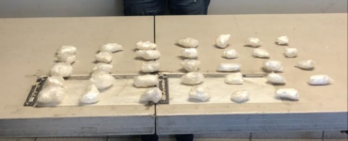 Tras inspeccionar el interior del vehículo, se encontró una mochila dentro de la cual había 34 envoltorios de plástico que contenían una sustancia con aspecto similar a la metanfetamina.