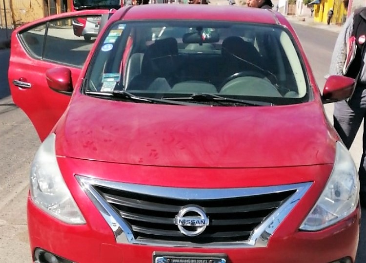 Elementos policiales acudieron intervinieron al tripulante de un Nissan Versa, modelo 2015, color rojo, con placas de circulación AKW4986, el cual había sido reportada como robado.