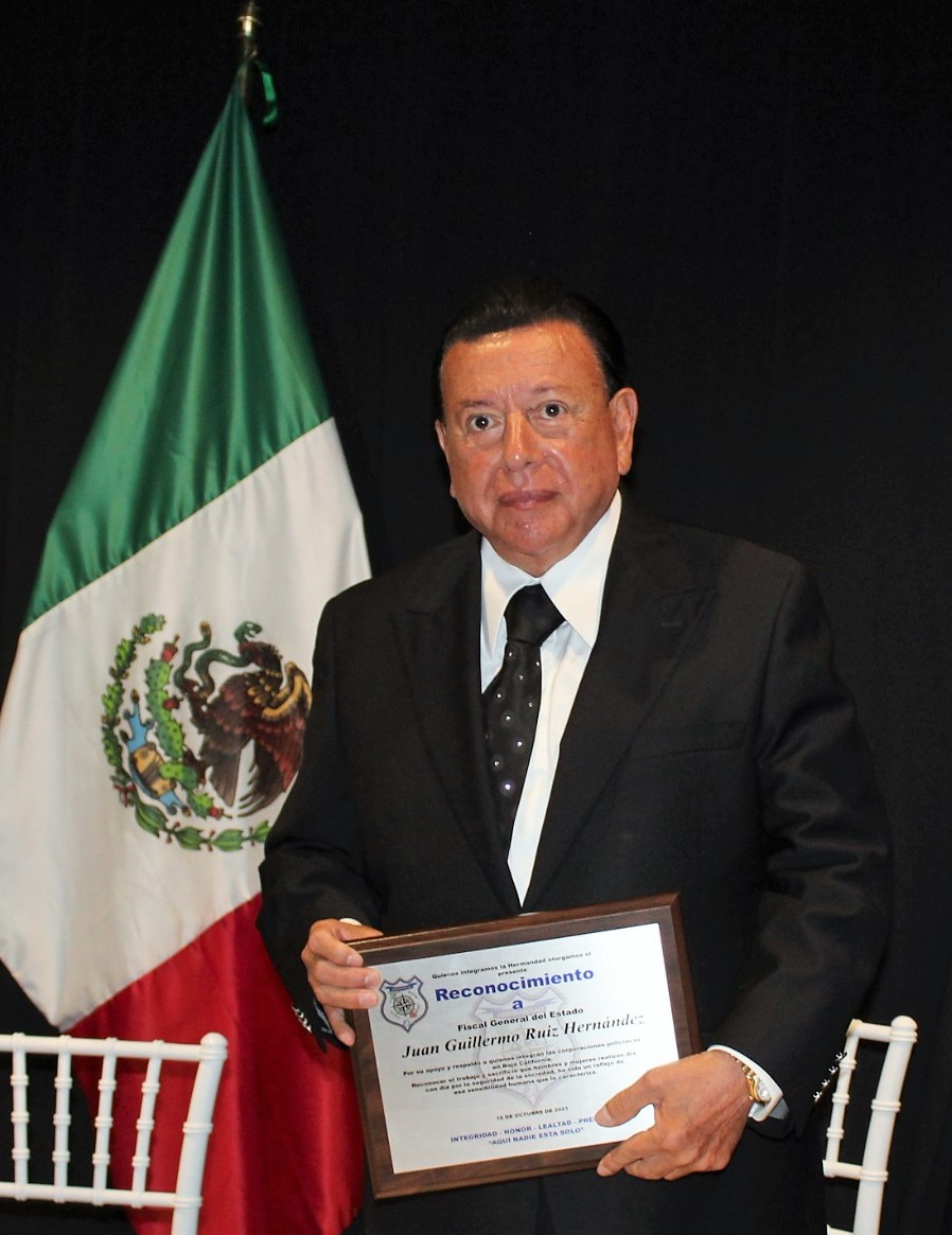 El fiscal general del Estado, Juan Guillermo Ruiz Hernández, recibió un reconocimiento de parte de la asociación civil “Hermandad”, ello por la labor que ha realizado en materia de prevención del delito y violencia, desde que asumió el cargo en noviembre de 2019.