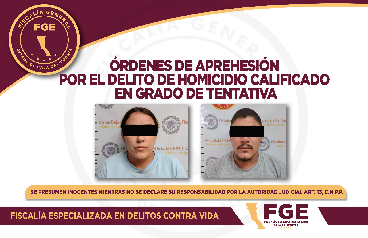 A los imputados JORGE JOSÉ “N” y ANGÉLICA “N” se le cumplimentó la orden de aprehensión por el delito de homicidio calificado en grado de tentativa.