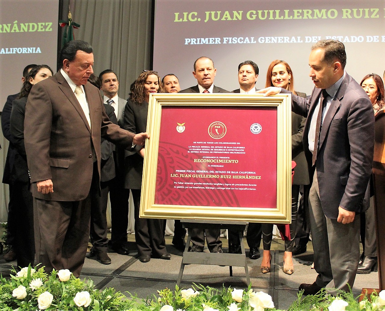 Merecido homenaje fue realizado en honor del licenciado Juan Guillermo Ruiz Hernández, por su destacada labor al frente la Fiscalía General del Estado, siendo el primer fiscal de Baja California. En su gestión trabajó en tres ejes fundamentales que son: la prevención del delito, el combate al crimen y la mediación por medio de sistemas alternativos de justicia.