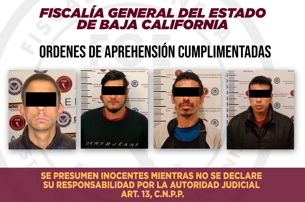Con el objetivo de detener a personas que se encuentran en calidad de prófugos de la justicia por diferentes delitos, elementos de la Fiscalía General del Estado (FGE), asignados a la Unidad de Aprehensiones llevaron a cabo un operativo que dio como resultado la cumplimentación de cuatro órdenes de aprehensión, resaltando la captura de dos presuntos homicidas.