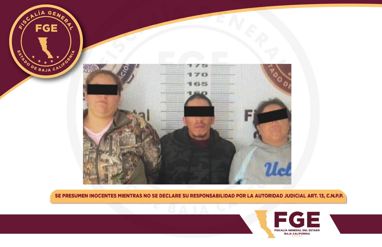Tras continuar con el despliegue policiaco en la ciudad, quedaron asegurados Ericka N, de 38 años, Rosario N, de 36 años y Benjamín N, de 24 años de edad; les confiscaron 31.3 gramos de lo que al parecer es metanfetamina y 12.34 gramos de una sustancia pastosa color café, con aspecto de heroína.