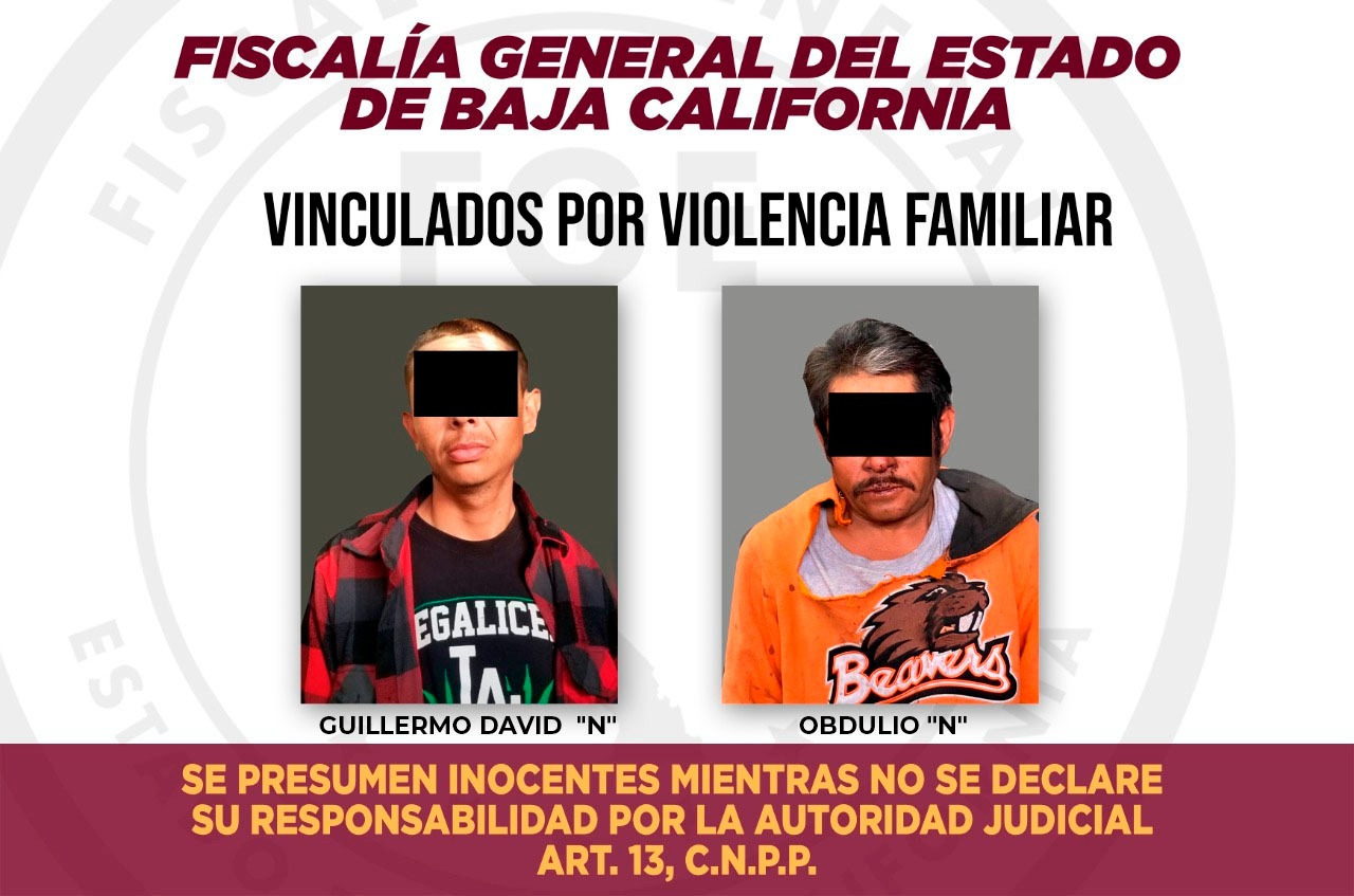 Mientras, que a Obdulio “N” se le acusa de los delitos de violencia familiar y portación de arma prohibida, hechos registrados el 25 de diciembre, quienes se encontraban festejando Navidad en el domicilio ubicado en las inmediaciones del ejido Quico Santana, en el Valle de Mexicali.