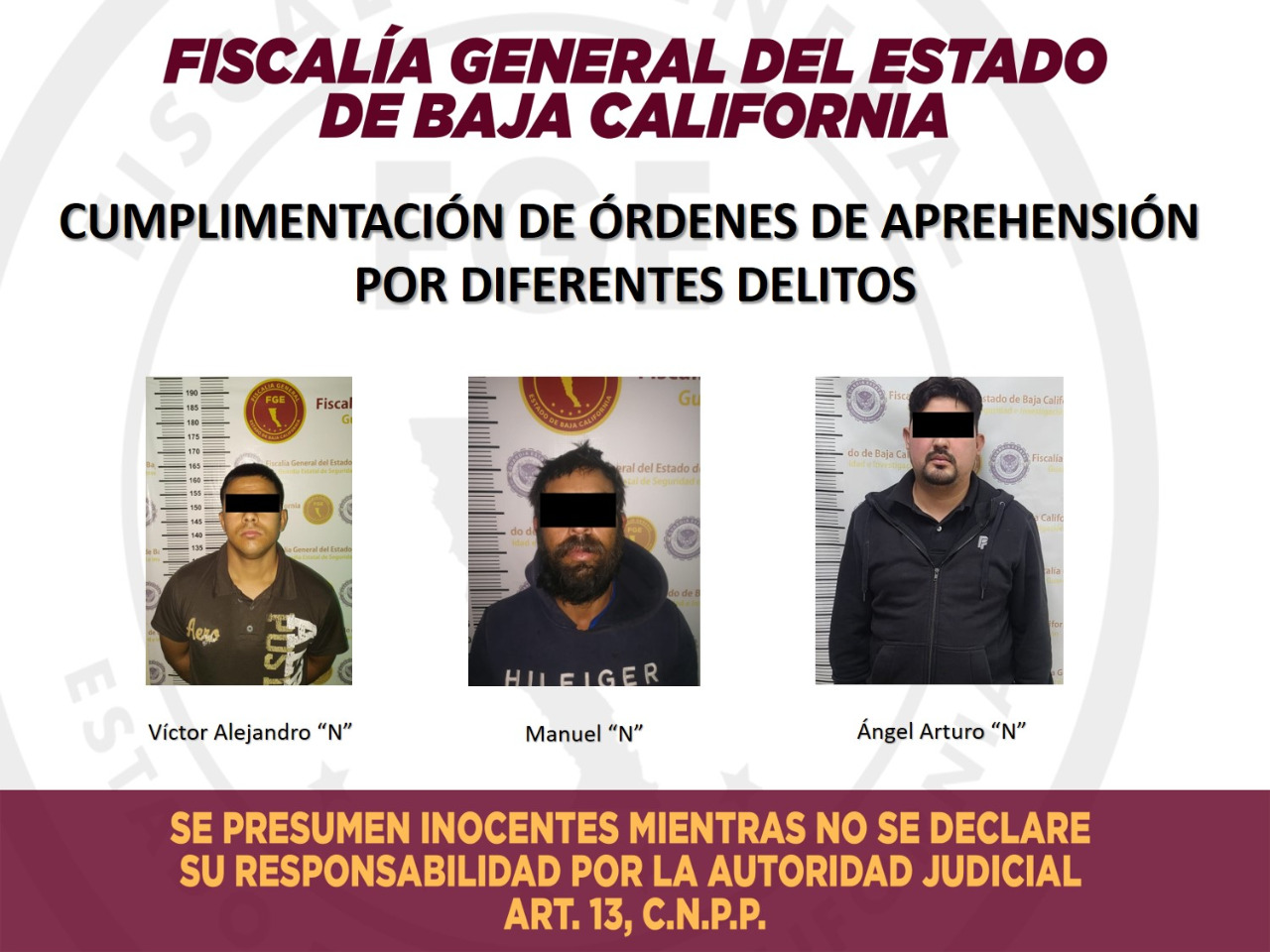 Continuando con las indagaciones con la finalidad de lograr el aseguramiento de individuos que evaden la justicia, elementos de la Fiscalía Regional de Mexicali cumplimentaron tres órdenes de aprehensión por diferentes delitos.