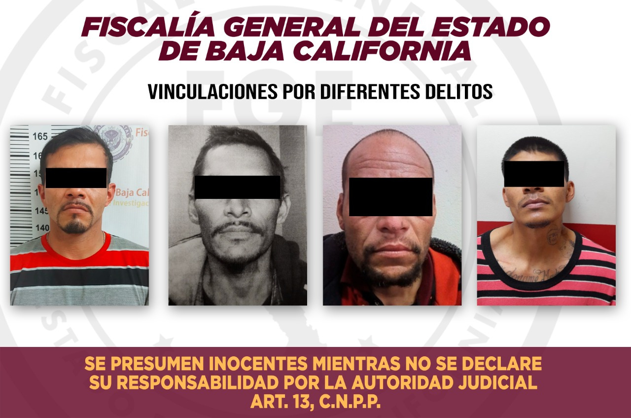 La Fiscalía Regional de Mexicali a través de la estrategia de fortalecer las investigaciones en el combate al delito de robo y sus modalidades, obtuvo vinculación a proceso en contra de cuatro individuos en audiencias por separado.