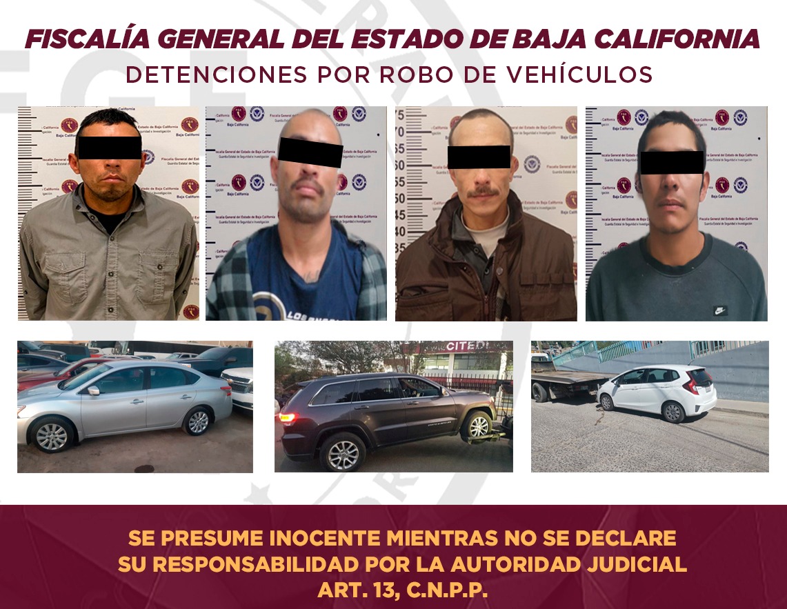 La Fiscalía General del Estado informa de la detención de cuatro personas, así como la recuperación de tres unidades que contaban con reporte de robo.