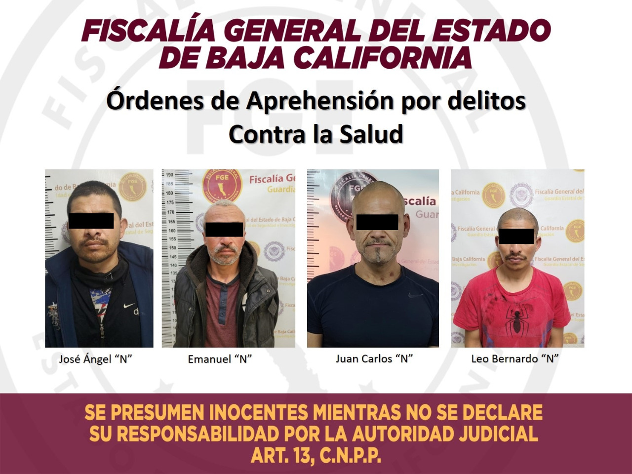 Elementos de la Fiscalía General del Estado detuvieron a cuatro sujetos por contar con una orden de aprehensión por delitos contra la salud.