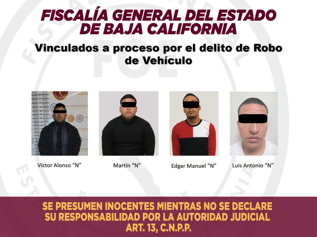 Obtiene Fiscalía Regional de Mexicali vinculación a proceso de cuatro sujetos por el delito de robo de vehículo con violencia