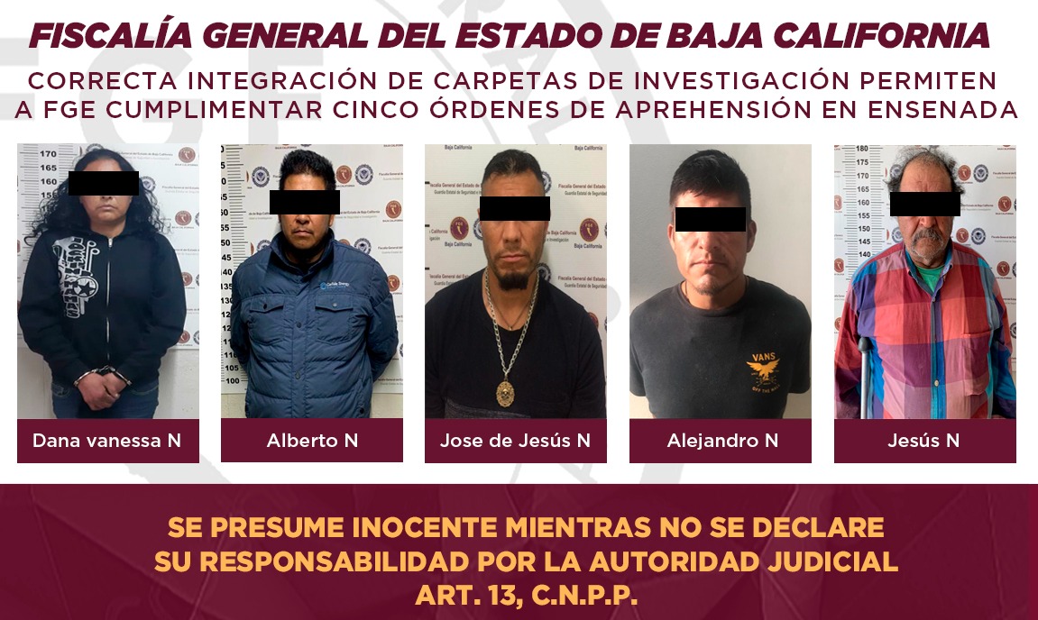 Investigación de Agentes de la FGE deriva en cumplimentación de cinco órdenes de aprehensión en Ensenada