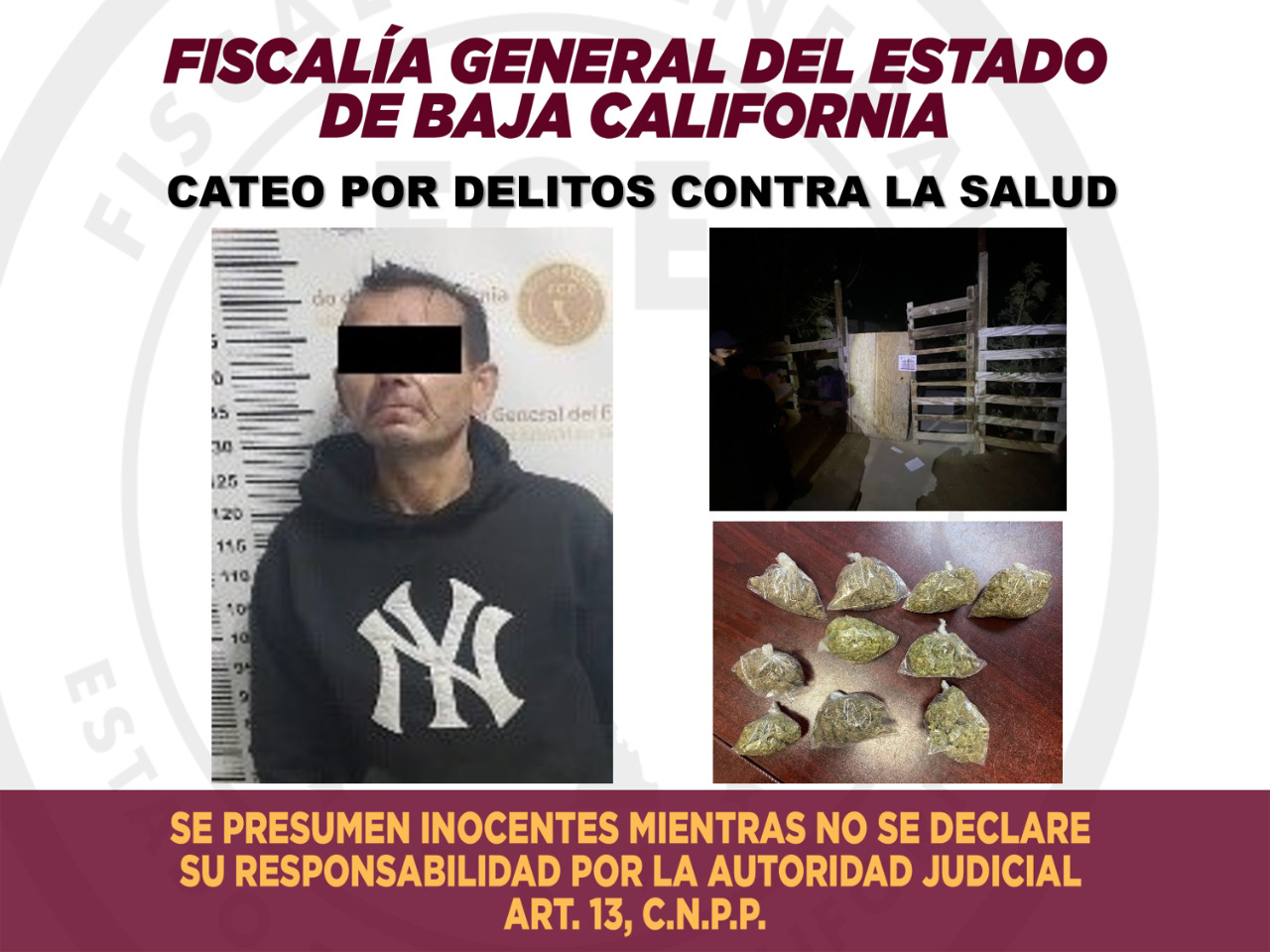 Esta diligencia judicial fue ejecutada por elementos de la Agencia Estatal de Investigación (AEI) en el domicilio ubicado avenida Olivo en la colonia Robledo, donde quedó bajo arresto Gerardo Rene “N”; en el predio se localizaron 10 envoltorios de plástico con un contenido similar a la marihuana.