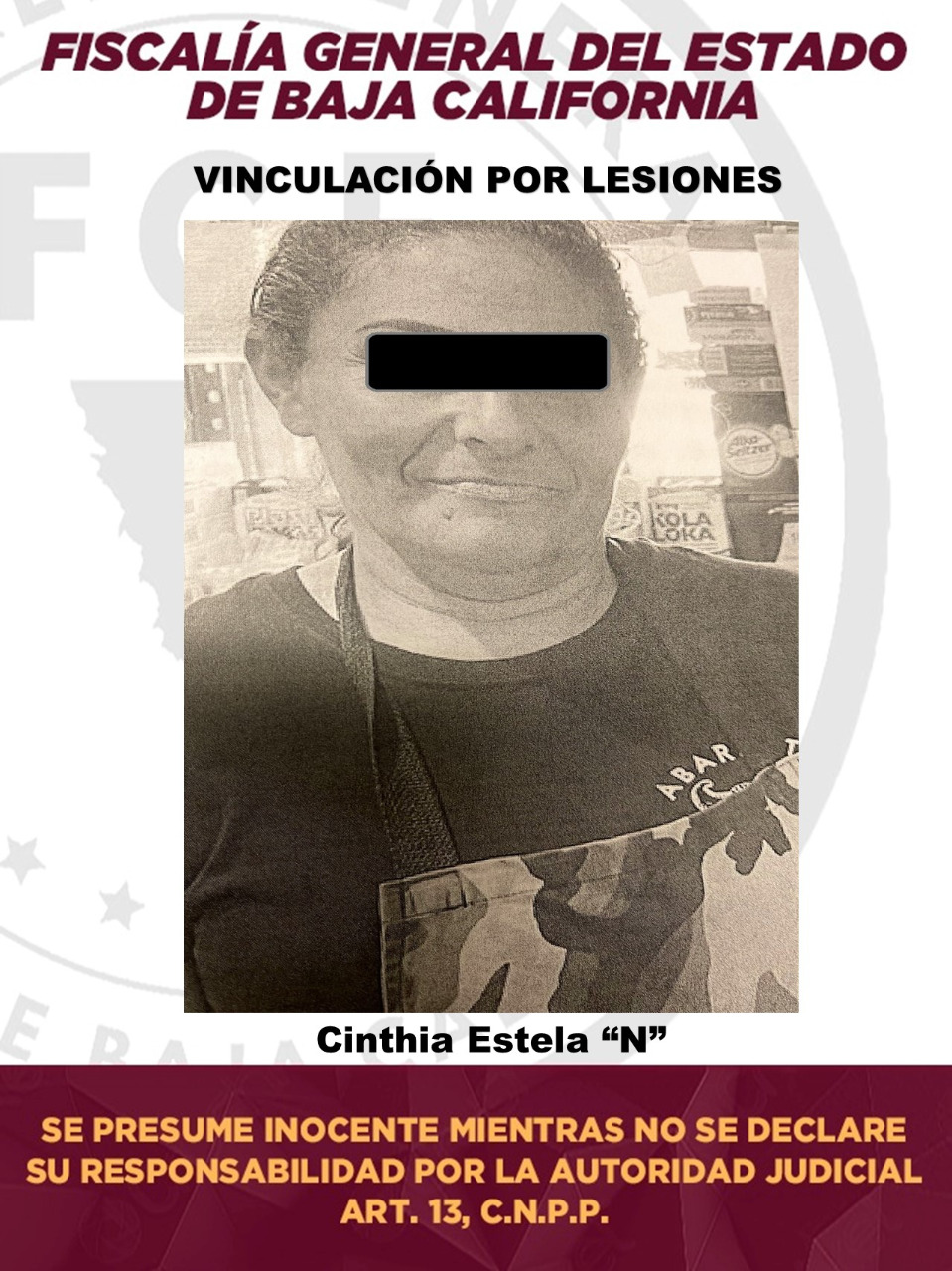 Fiscalía Regional de Tecate obtiene vinculación a proceso de mujer por delito de lesiones