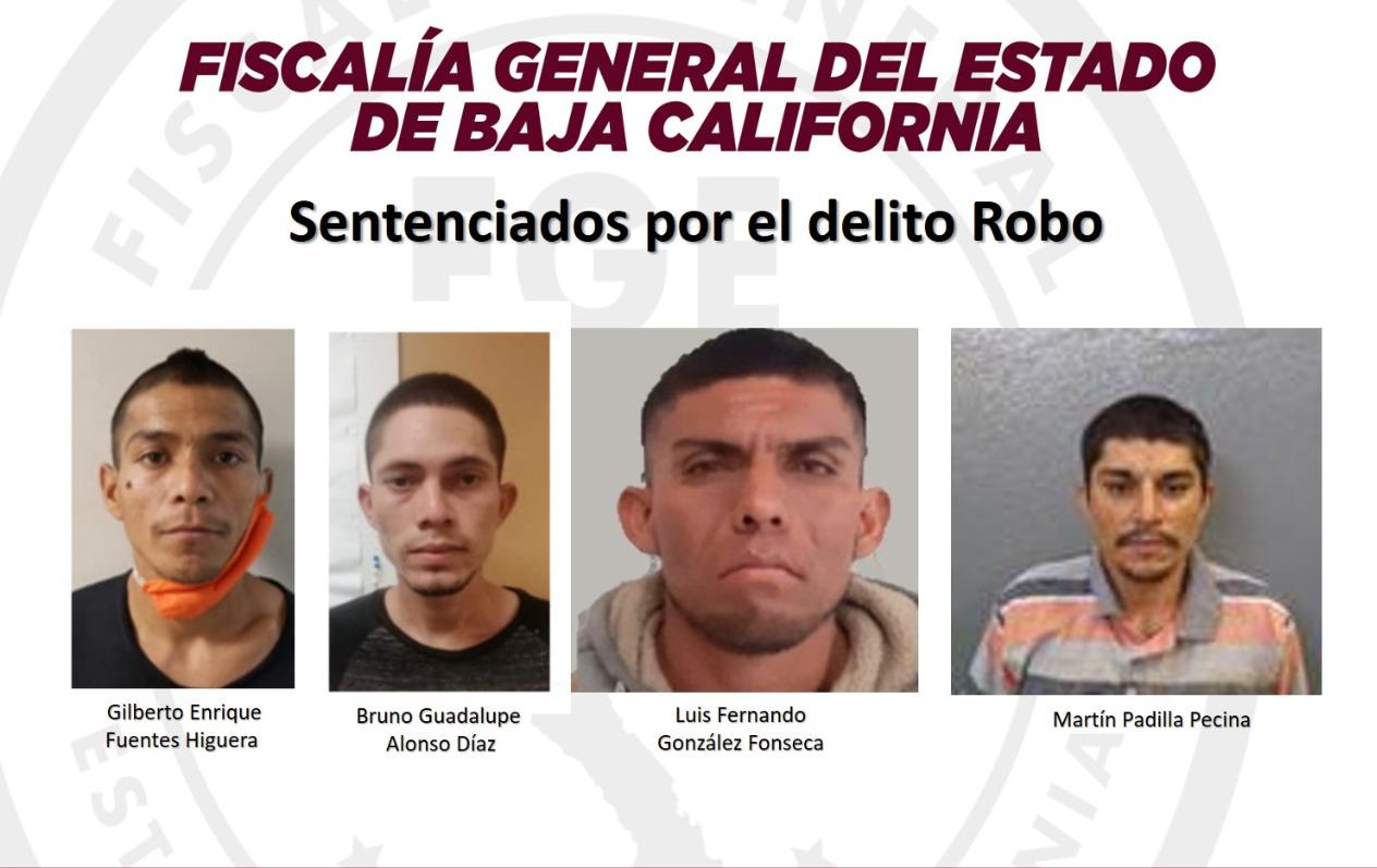 La Fiscalía Regional de Mexicali logró obtener sentencias condenatorias en contra de cuatro sujetos, por los delitos de robo con violencia, robo calificado cometido de noche, robo con violencia calificado por haberse cometido por dos personas y lesiones calificadas mediante procedimientos abreviados durante audiencias por separado.