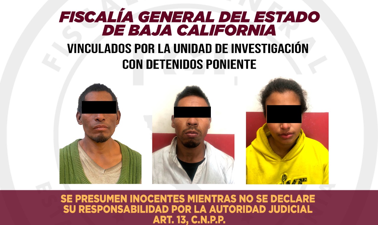 La Fiscalía Regional de Mexicali, a través de la Unidad de Investigación con Detenidos Poniente, logró en audiencias por separado la vinculación de tres imputados por los delitos de robos y portación de arma prohibida.