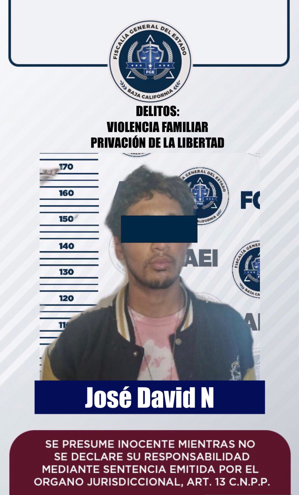 La Fiscalía Regional de Tecate, a través de elementos de la Agencia Estatal de Investigación, cumplimentó una orden de aprehensión contra un individuo que presuntamente cometió los delitos de violencia familiar y privación de la libertad.