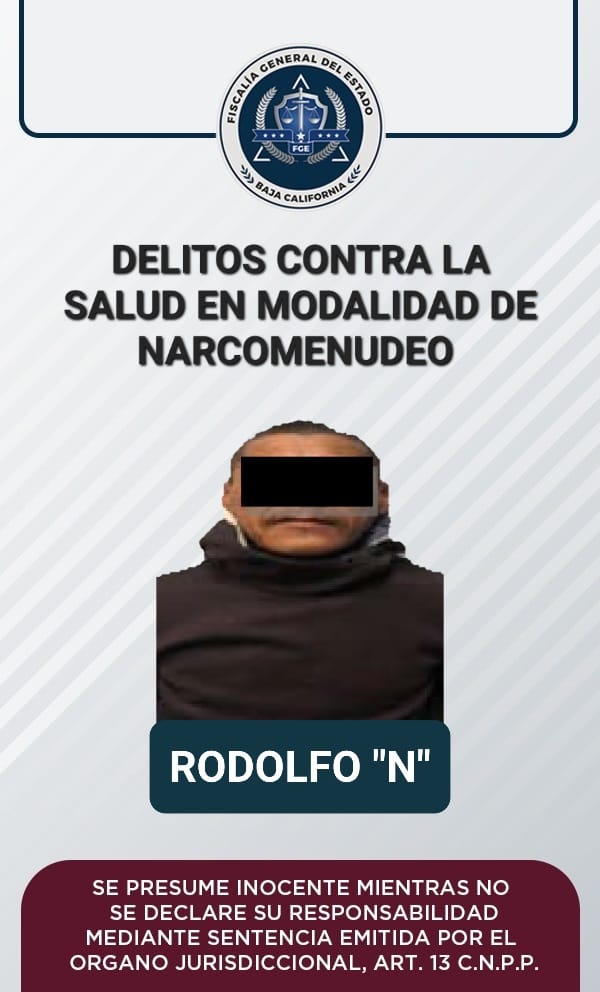 La Fiscalía Regional de Playas de Rosarito obtuvo auto de vinculación a proceso penal contra Rodolfo “N”, por delitos contra la salud en su modalidad de narcomenudeo en la variante de posesión simple del psicotrópico denominado metanfetamina.