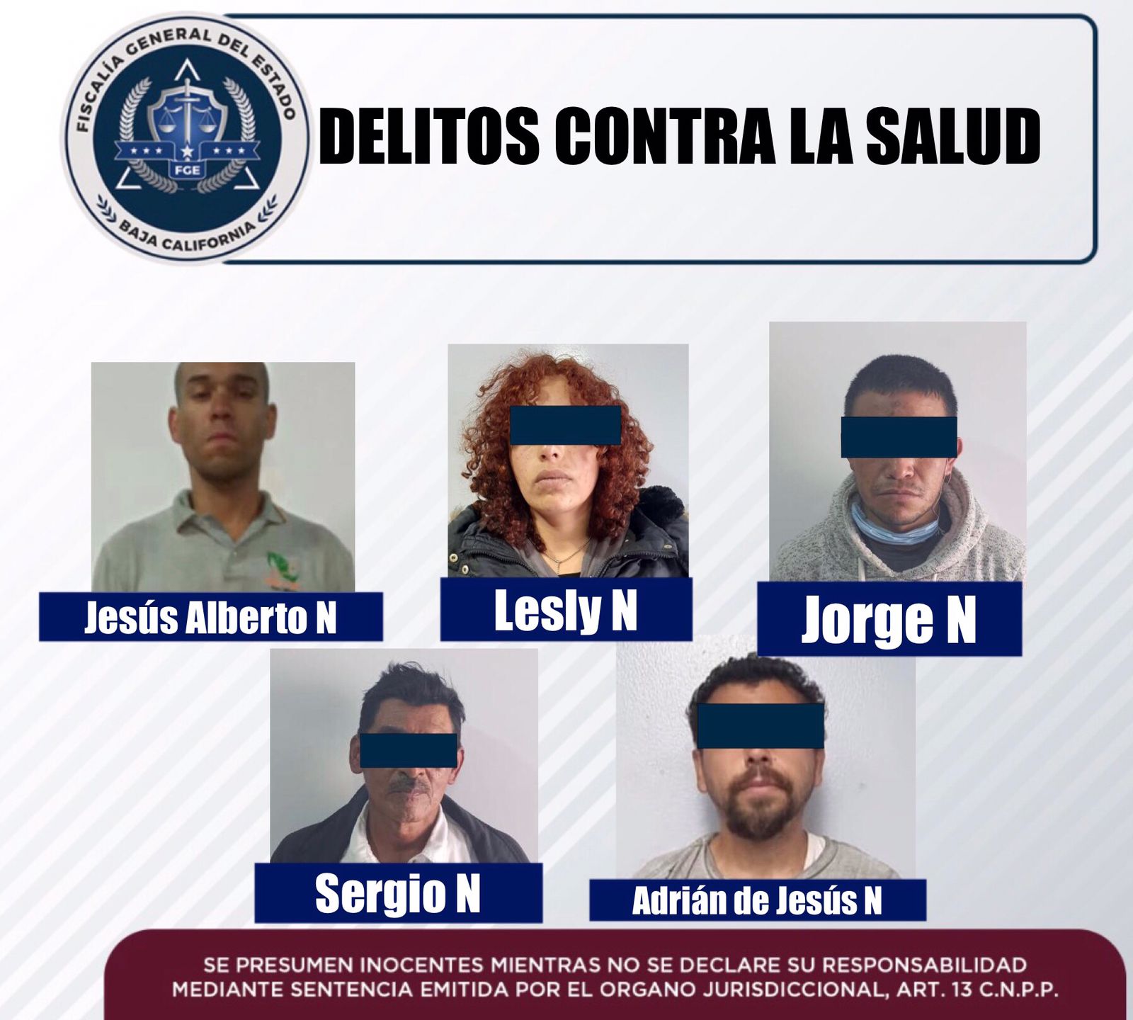 La Fiscalía General del Estado (FGE), obtuvo la vinculación a proceso de cinco sujetos, por delitos contra la salud.