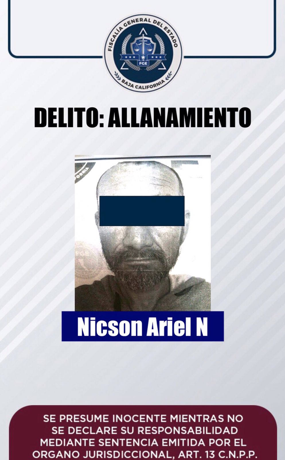 En hechos ocurridos el pasado 11 de abril, el imputado Nicson Ariel “N” se introdujo sin autorización a un domicilio ubicado en kilómetro 4 de la carretera Tecate a Ensenada, a la altura de la colonia Alfonso Garzón, lugar donde fue sorprendido por el propietario de la vivienda y se comunicó al 9-1-1 para luego ser detenido por oficiales de la Policía Municipal.