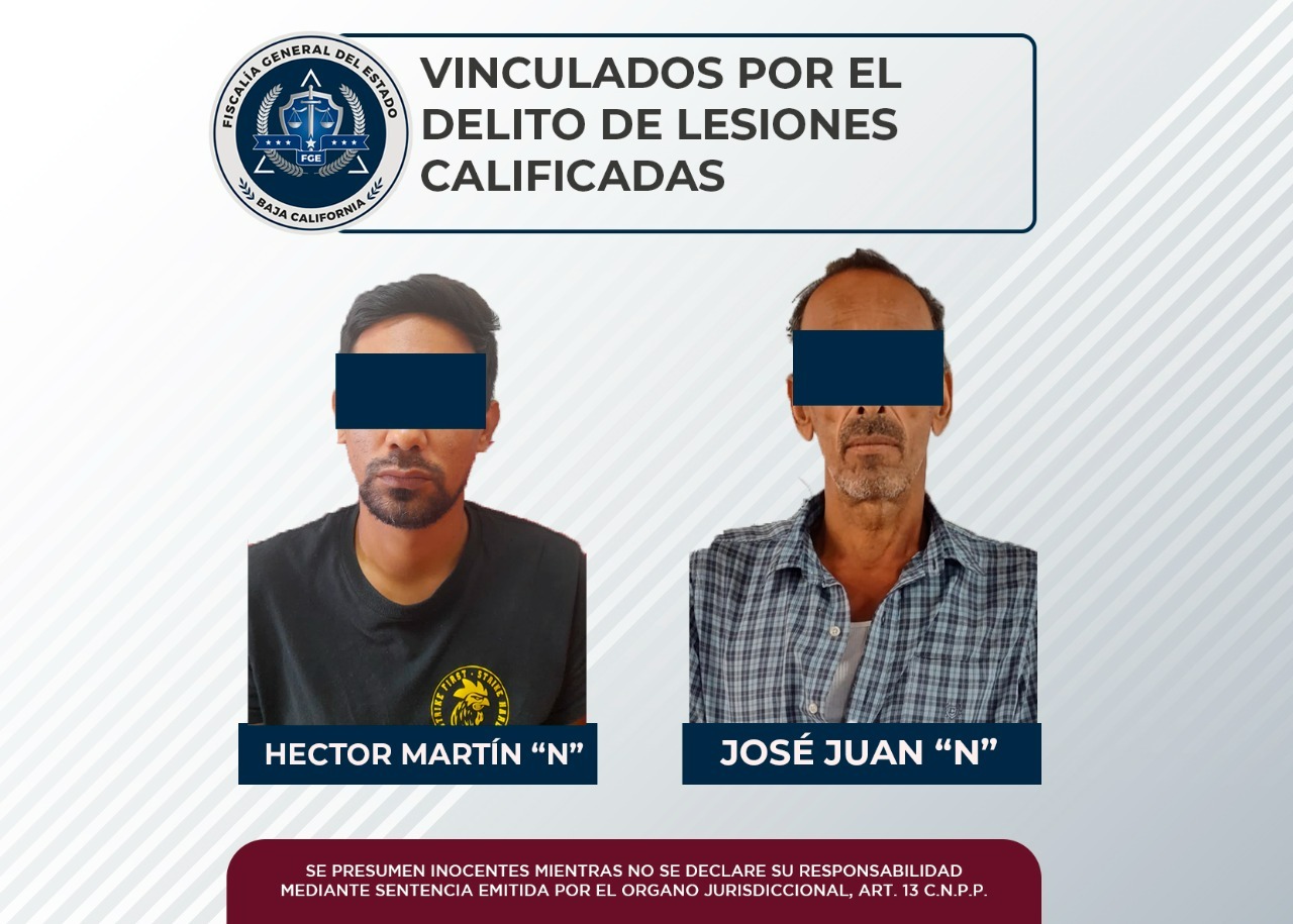 La Fiscalía Regional de Mexicali logro vincular a proceso a dos sujetos acusados del delito de lesiones calificadas, durante audiencias por separado.