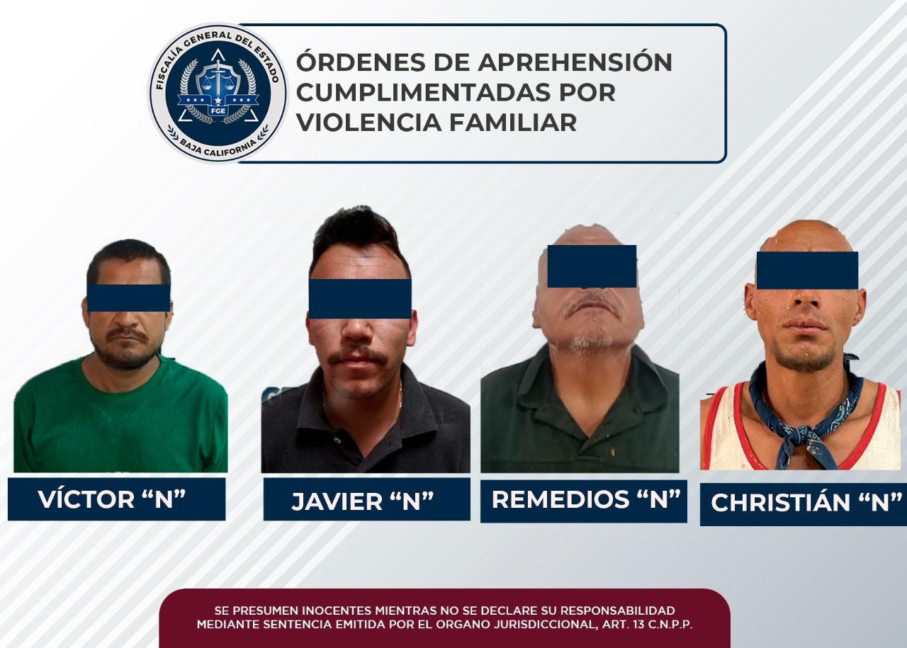 Elementos de la Agencia Estatal de Investigación adscritos a las Unidades de Investigación Foráneas de Guadalupe Victoria, con Detenidos Poniente y Oriente lograron el aseguramiento de cuatro sujetos, quienes contaban con mandatos judiciales por el delito de violencia familiar.