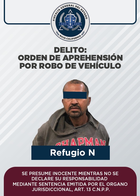 Por otra parte, se cumplimentó orden de reaprehensión a J. Refugio “N”, quien está señalado en la causa penal 01769/2021 como presunto responsable de robo de vehículo de motor en modalidad de uso, por lo que fue puesto a disposición del juez de control correspondiente para continuar con el proceso judicial.
