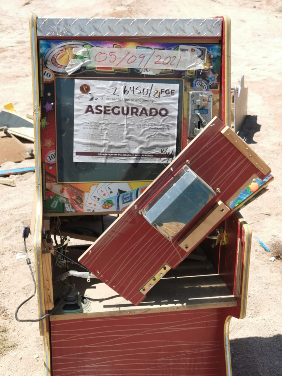 La Fiscalía General del Estado (FGE), realizó la destrucción de 115 máquinas tragamonedas que fueron localizadas y aseguradas en diversos operativos realizados por la Fiscalía Regional de Mexicali y la Fiscalía Especializada en Narcomenudeo.