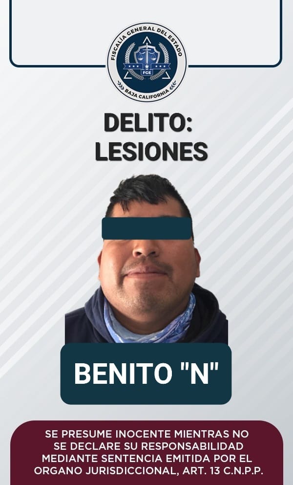 Agentes Estatales de Investigación capturaron a Benito “N”, el 22 de abril del año en curso, frente a la colonia Militar, en el kilómetro 160 de la delegación Camalú.