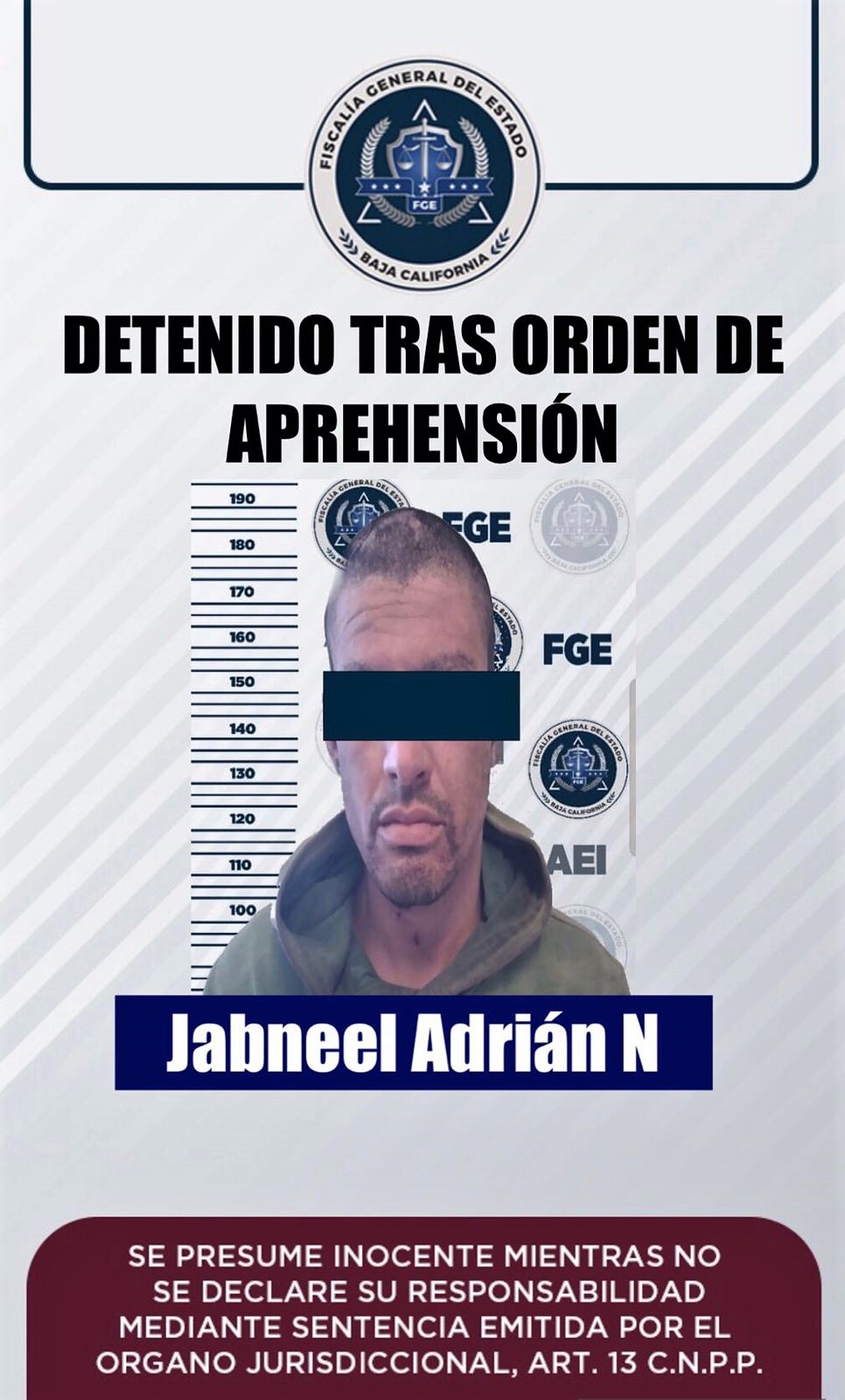 El 25 de abril del 2022, Agentes Estatales de Investigación cumplimentaron la orden de aprehensión, quedando el imputado a disposición del juez de control del partido judicial de Tecate.