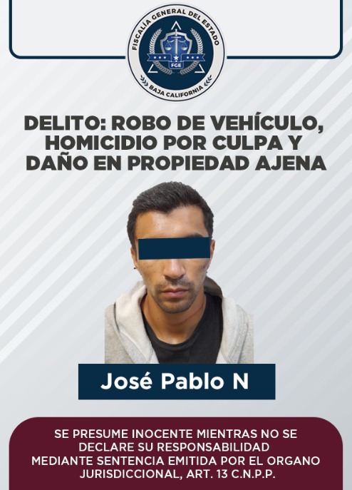 La Fiscalía General del Estado, a través del trabajo realizado por el Ministerio Público, logró que fuera vinculado a proceso penal un imputado de los delitos de robo de vehículo, homicidio por culpa y daño en propiedad ajena.