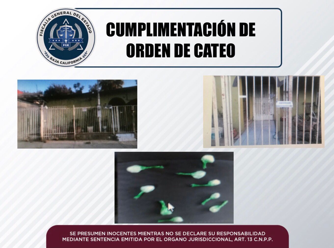 La Fiscalía Regional de Tecate, en seguimiento a la investigación de una denuncia anónima, ejecutó una orden de cateo en una vivienda en la que presuntamente se vendían drogas.