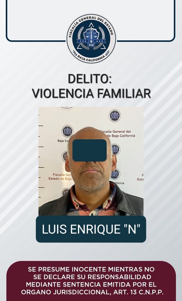 La Fiscalía Regional de Playas de Rosarito a través de elementos de la Agencia Estatal de Investigación, cumplimentó la orden de aprehensión contra Luis Enrique “N” por el delito de violencia familiar.