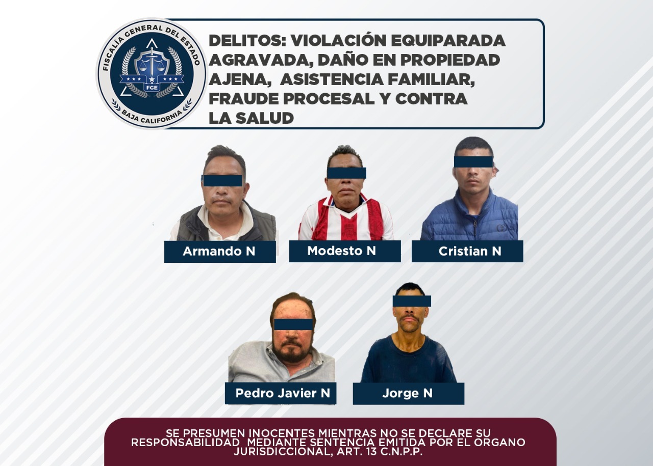 Elementos de la Agencia Estatal de Investigación (AEI) adscritos a la Fiscalía Regional Tijuana, capturaron a cinco prófugos de la ley quienes cometieron diversos delitos.