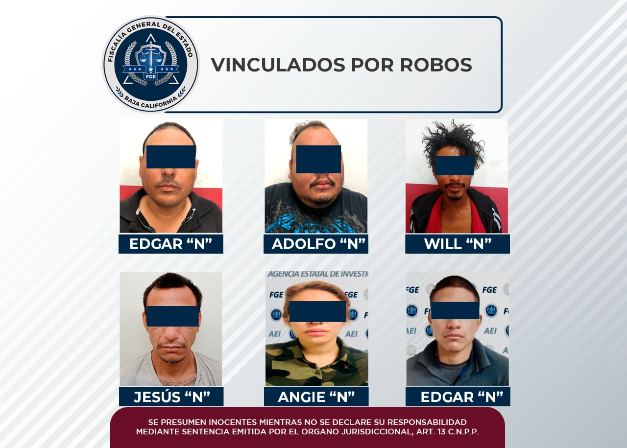 La Fiscalía Regional de Mexicali, a través de la Unidad de Investigación de Delitos con Detenido Poniente y Robos Poniente, logró vincular a proceso en audiencias por separado a seis imputados por robos.