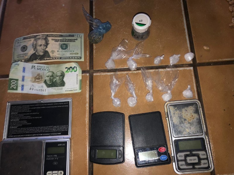 En el lugar se detuvo a Israel “N”, alias “El Cachora”, de 42 años, así como diez envoltorios de plástico transparentes conteniendo al parecer metanfetamina, un envoltorio de plástico con marihuana y un frasco de plástico transparente con tapadera blanca conteniendo al parecer marihuana.