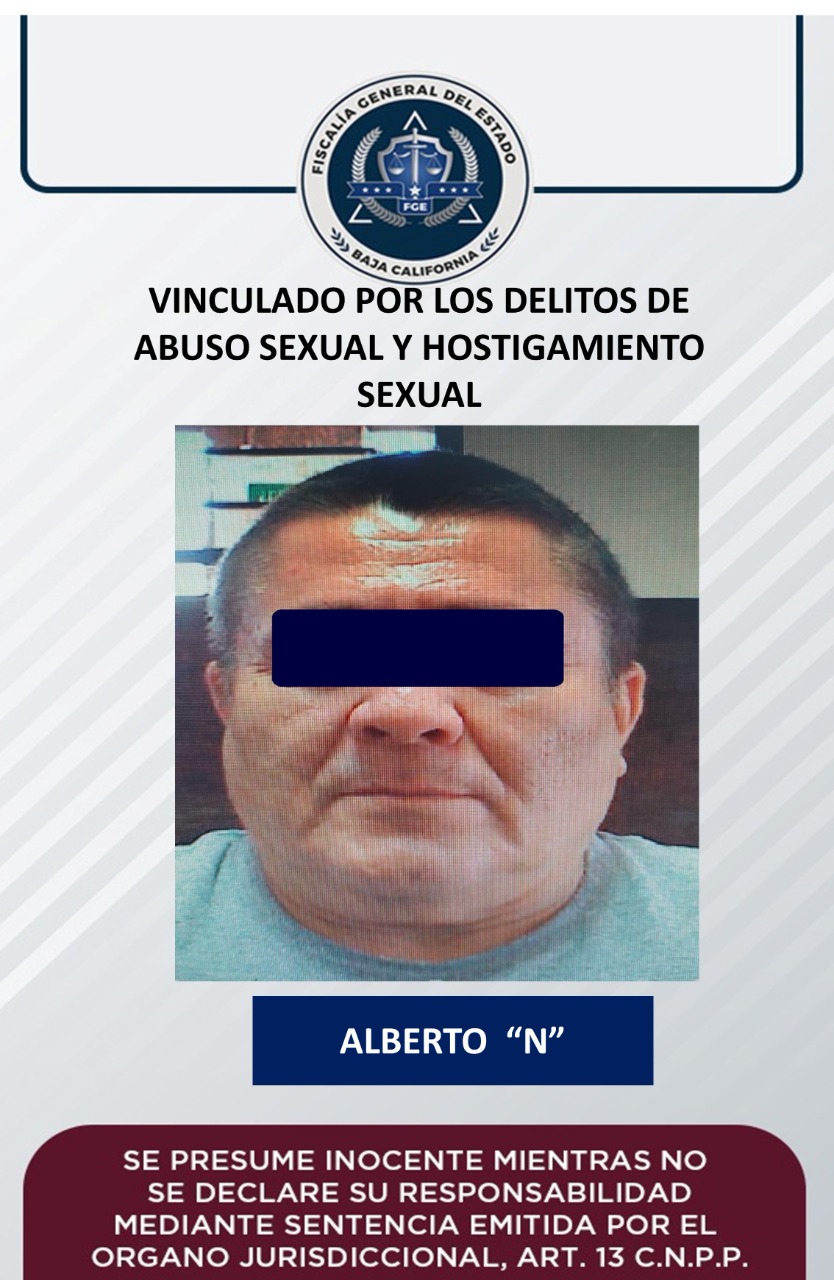 En base a las evidencias aportadas por la Fiscalía Regional de Mexicali a través de la Unidad de Investigación Foránea de Ciudad Morelos, se logró vincular a Alberto “N”, por los delitos de abuso sexual y hostigamiento sexual.