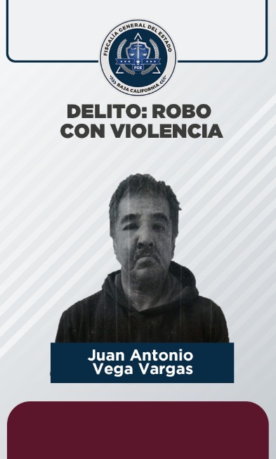 La Fiscalía Regional de Tecate, logró una sentencia de cuatro años de prisión y una multa por la cantidad de ocho mil 962 pesos, para Juan Antonio Vega Vargas, por su responsabilidad en el delito de robo con violencia, en hechos ocurridos en noviembre pasado.