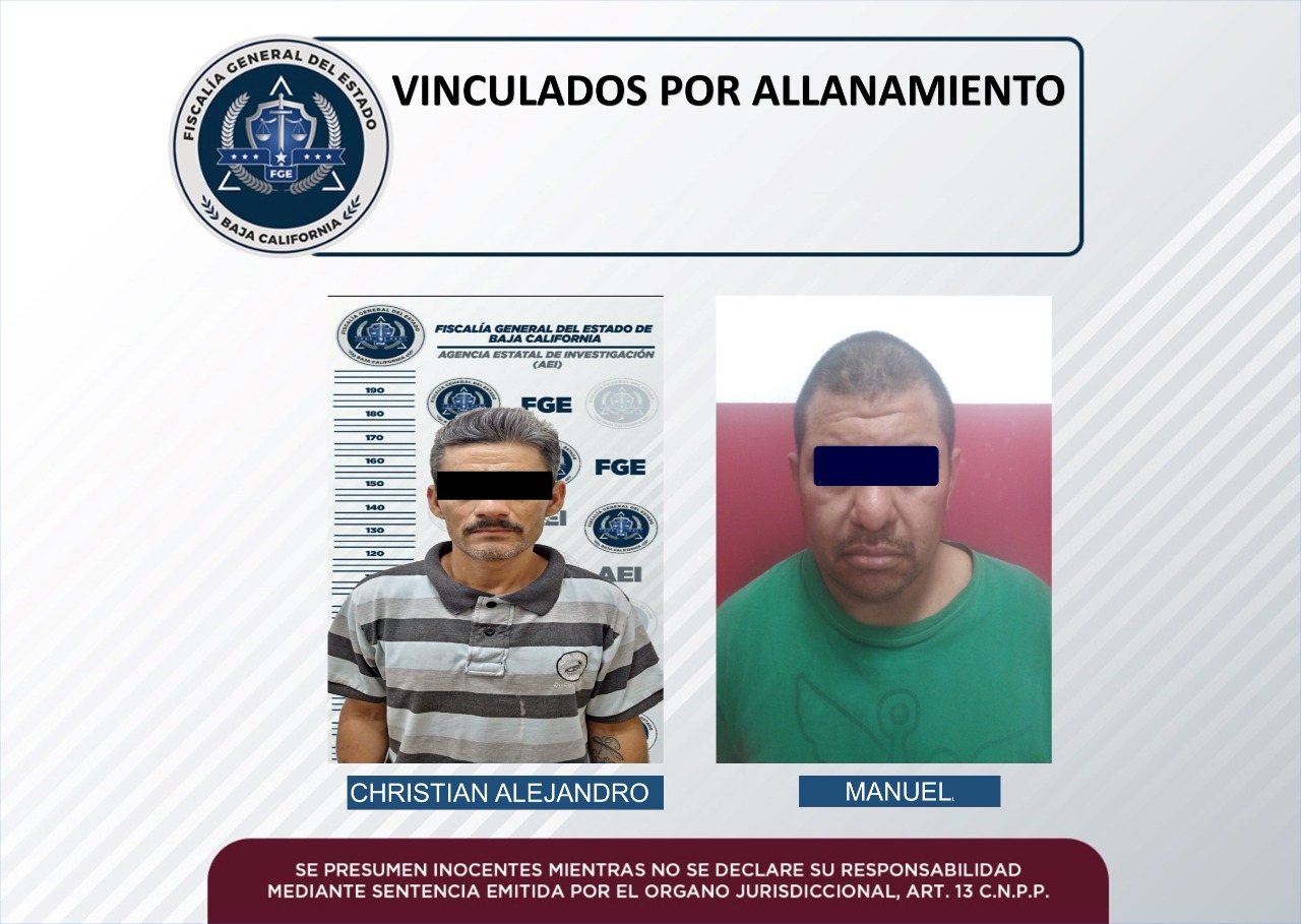 La Fiscalía Regional de Mexicali, a través de las Unidades de Investigación con Detenidos Poniente y la Unidad de Investigación Foránea de San Felipe, logró que dos hombres acusados de allanamiento fueran vinculados a proceso penal.