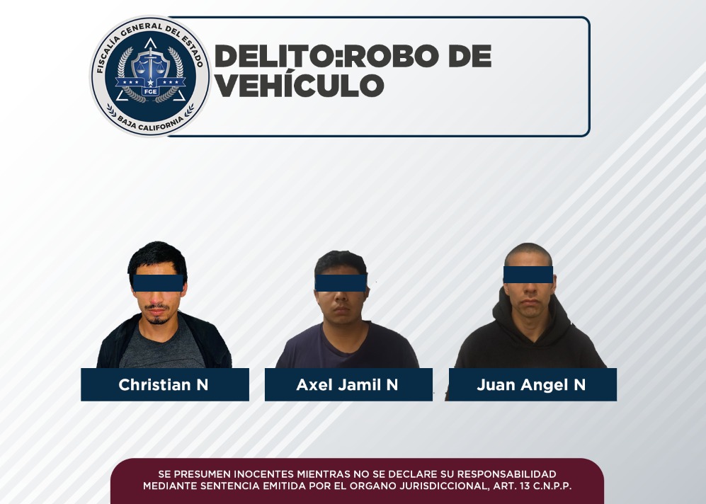 La Fiscalía General del Estado mantiene el combate a los delitos en sus diferentes modalidades, recientemente, elementos de la Agencia Estatal de Investigación (AEI) detuvieron a tres individuos por el delito de robo de vehículo, uno de ellos capturado en flagrancia y los otros dos por cumplimentación de órdenes de aprehensión.