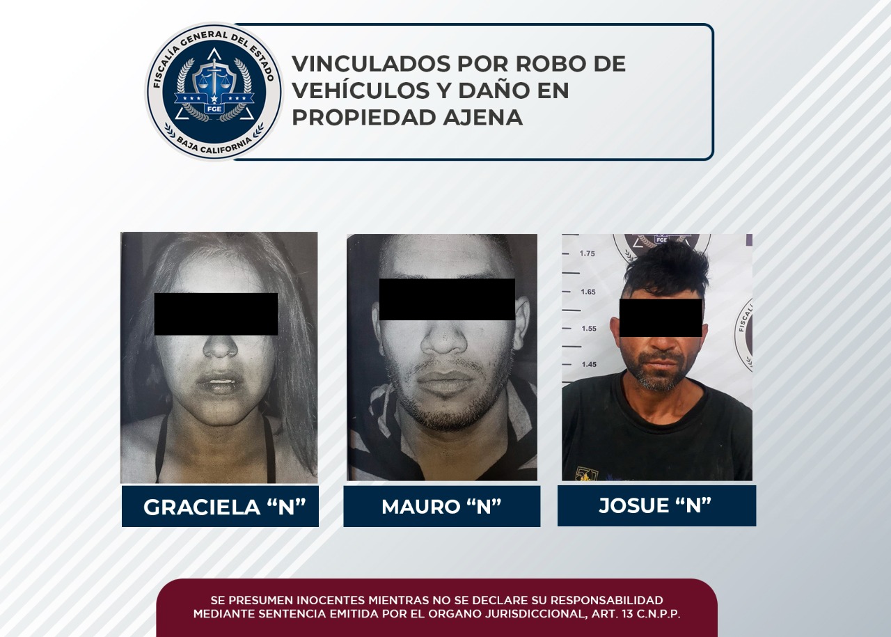 La Fiscalía General del Estado, a través de la Unidad Foránea de San Felipe, logró la vinculación a proceso en audiencias por separado de tres imputados por los delitos de robo de vehículo y daño en propiedad ajena intencional.