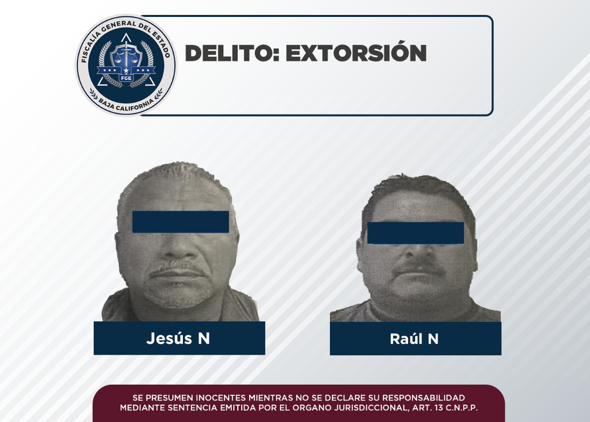 Posterior al trabajo de investigación realizado por el Ministerio Público, la Fiscalía General del Estado, logró la vinculación a proceso de Jesús “N” alias “El Chino” y Raúl “N”, por el delito de extorsión a un grupo de comerciantes del mercado sobre ruedas “Los Panchos”, en Playas de Rosarito.
