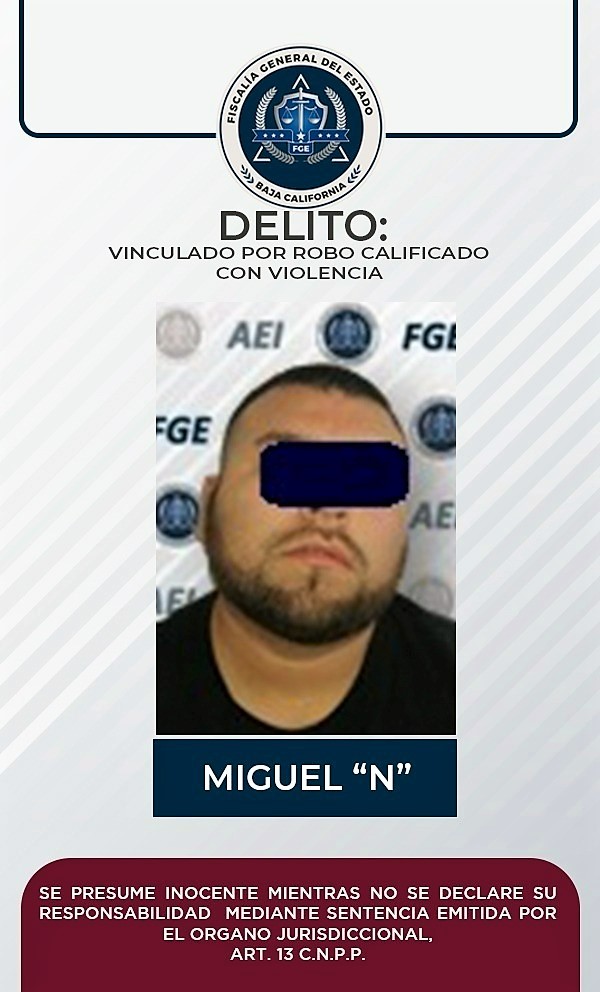 La Fiscalía Regional de Mexicali, a través de la Unidad de Investigación de Delitos de Robo Poniente, logró la vinculación de Miguel Ángel “N alias “El Chicano”, acusado de participar en el violento robo contra una cuentahabiente.