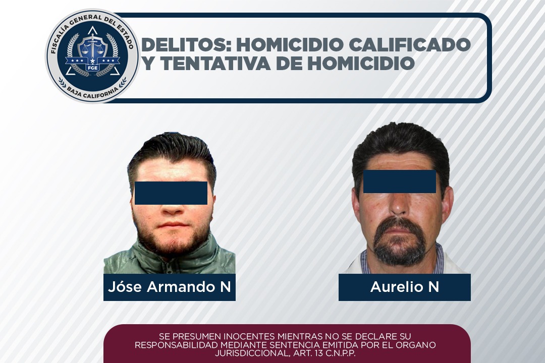 Elementos de la Agencia Estatal de Investigación, de la Fiscalía General del Estado (FGE), aseguraron a dos personas, quienes contaban con órdenes de aprehensión, en casos diversos, por los delitos de homicidio calificado, y tentativa de homicidio.